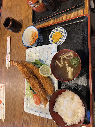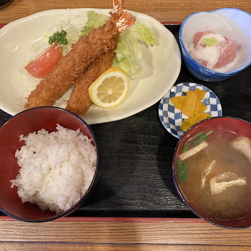 今回は、「海老フライ定食 松」をいただきました。人生で見た中で1番大きいエビフライで驚きました。 写真ではわかりづらいですが、厚み、長さ両方ありました。 ご飯、メイン、汁物、漬物、小鉢、サラダがついた定食でした。 エビフライは、サクサクの衣で身が厚みがありプリプリで甘みのあるエビで美味しかったです。 ソースとタルタルソースをかけて食べることができます。ソースは無難に美味しかったですし、タルタルソースも濃厚なソースでエビフライと相性がよく食べていて幸せな気持ちになりました。 タルタルソースは、卵や玉ねぎもしっかり擦り潰されたソースでした。1本でも充分に満足ができるボリュームでした。 エビの身がしっかり感じられるエビフライでした。 歳のせいか2本目が少し食べるのが大変でした笑 エビフライが好きな人は訪れてみてほしいお店です。エビフライの松の価格は少し高めですが食べる価値はあると思います。 店員さ...