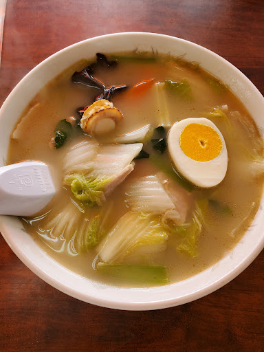 2021.11日曜日のお昼に訪問。 五目中華をいただきました。 スープは白濁していて、塩コショウが効いています。 中細の縮れ麺の上に、たっぷりの白菜、ニンジン、たまねぎ、ほうれん草、きくらげ、そして豚肉4~5枚、ベビーホタテ1つ、ゆで卵が半分。 昔ながらの街の中華屋さんの味でした。 席は畳の小上がりに4人掛け座卓×4つ、ホールに4人掛けテーブル×2つ、カウンターに4席。