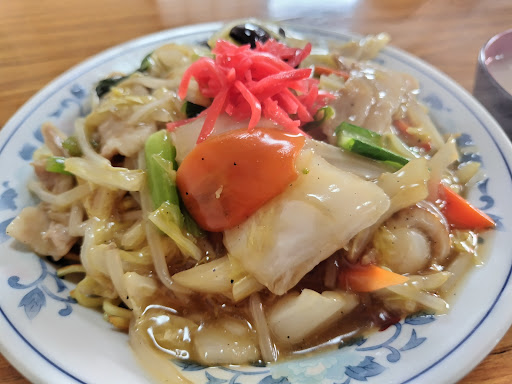 Read more昔ながらの中華店ですね。道路に向かって高々と掲げられている『珉珉亭』の看板。経年劣化のためかバックのオレンジ色が退色してしまって用を成しておりませんので、探して行かれる方は要注意です。 お食事、味は残念ながら服用中の薬の副作用で味覚異常のため、ただの塩味だけで何とも…。あくまでも私が味覚異常なので、多分おいしいのでしょう。ただ、量は、「大迫半端ない」。おかず大盛りではありますが、ひと目見て食欲が減退する様な大盛り加減でした。味覚異常でこの量を…...