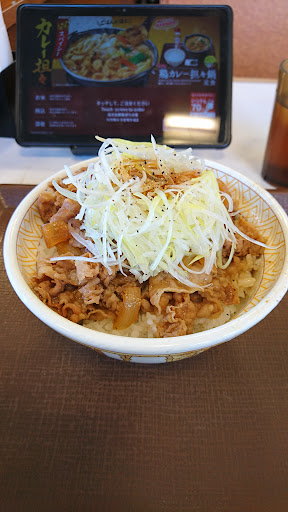 The food here is as expected. The service however is quite fine. I went out one evening with a colleague of mine. After spending some time in and around the town area,we decided that it was a fine time to stop and take a break. As was a fun tradition in Japan, we decided to get some gyudon for dinner! Thinking about all the places we could have went, we then decided to stop at Sukiya! What a great time that was. As we discussed the things that we had seen that day, a steaming hot bowl of Gyudon was placed before us! As we began to devour this delicious food, we were surprised that they had a jar of Ginger sitting on the table! So we were able to reset our taste pallets and continue on with a succulent dinner!