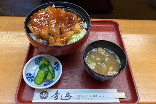 Read more旨いカツ丼と言う言葉に惹かれて、1時間弱の道のりを経て食べに来ました。開店時間まで少し時間があったので周辺を少し散策。気仙沼街道で栄えた町とあって歴史ある店が多いし、川も流れていて趣きがある。一番乗りで入店し、迷わずカツ丼を注文。カウンターに座ったが奥の調理場で作ってるみたい(カウンターは夜のお鮨用?)少し待って出てきたカツ丼。蓋を開けて良い香り。見た目はスタンダードなもの。箸を入れて・・、厚い。旨い。このカツだけでも相当なボリュームがあるかも。食事後にコーヒ...