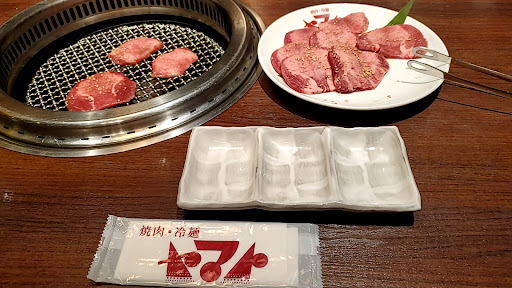 2020.8訪問 タッチパネルで注文する方式です。 喫煙所は入り口を出てすぐにありました。 写真は上牛タン塩の2人前。 ほとんど塩味はついておらず、ミルに入った岩塩が付いてきたので、適宜自分好みに味付けするのでしょう。 美味しく戴きました。 冷麺を別辛で注文。 個人的にはスープのコクがあまり感じられなかったのですが、辛みのカク...