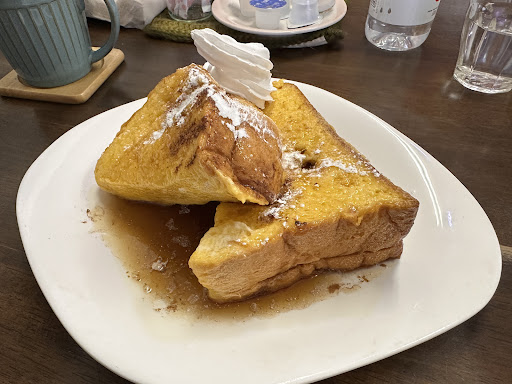 分厚いフレンチトーストで たっぷりのメープルシロップにシナモンも しっかり目にかけられていて ふわふわでしっとり