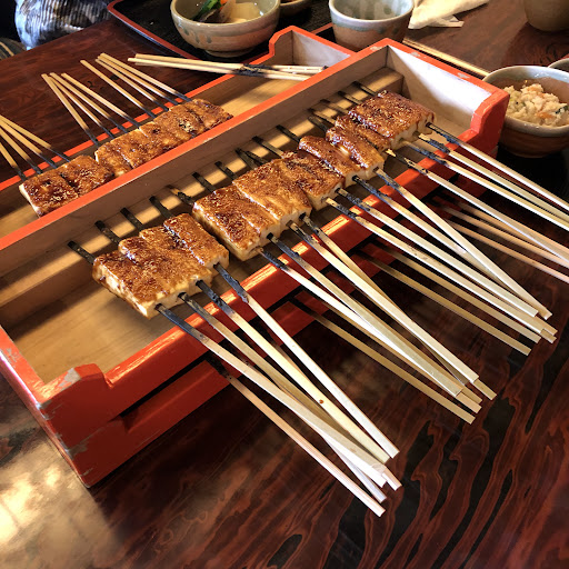 Super delicious and fulfilling meal. The 200+ years old restaurant specialized in tenkaku (basically bbq tofu with miso sauce). Two of us ordered one set meal, one beancurd sheet (tofu skin) salad, and one tenkaku eggplant (seasonal dish). The tofu was soft, hearty warm and excellent to go with the rice. The bean pulp (leftover from making soy milk) side dish was interesting. The eggplant was extremely juicy. So happy that we had dinner here before we leave Iga.
