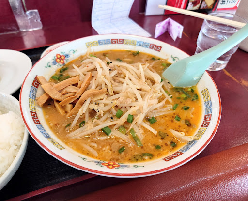 違うラーメン大学には行ったことありましたがこちらは初訪でした。 看板に創業1967年と書いてあるので50年以上続く老舗ラーメン店ですが従事されている方々は若いので代替わりしたのでしょうか。 それはさておき今回は辛こて味噌󠄀とコーンクリームラーメン、半チャーハン、餃子を注文しました。キムチが無料サービスなのとランチタイムに麺類を注文すると半味玉かライス小がサービスということでキムチと味玉もお願いしました。 店内8割方席が埋まっていたので少し待ちましたがキムチをアテにビールを飲みながらなので全然大丈夫。 コーンクリームラーメンは名前のとおりコーンスープのラーメンなのですが少し薄味に感じたのでブラックペッパーとすりおろしニンニク追加でちょうどいいかんじでした。 辛こて味噌󠄀は辛がついてますが少し辛いくらいでコクのある味噌味で美味しかったです。 チャーハンも細かく刻んだチャーシューがいいアクセントで美味しいし餃子も手作りかはわかりませんが美味しかったです。 先代?の味はわかりませんがこの味ならもう50年も余裕で続くんだと思いました...