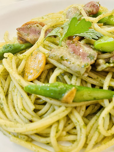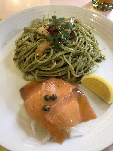 〇料理は少し高いですがとても美味しいです。2名で行きどちらともパスタを頼みました。太麺で見た目以上にお腹にたまり満足です。 単品で頼みましたが、前菜のバイキングとドリンクバーがあります!前菜はどれも美味しくバイキングということで自分で量を調整できるので助かりました。 デザートは追加料金で3つ選べます。どれも手が込んでいて感動でした。