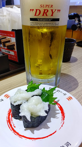 Read more3歳の子供が車を出すと必ずお寿司!と騒ぐので頻用させていただいてます。 周辺にスシローやくら寿司もありますが、こちらが一番駐車場や店内が広く、他店よりも移動もスムーズで過ごしやすい気がして毎回ここです。 3人がけベンチ程の座席で、まだお座りの出来ない赤子を傍に寝かせて置おけるので助かります。またお子様プレートが新幹線なので乗り物好きの子供もご機嫌で居てくれます。 休日のお昼時は多少待ちますが、それ以外は待たずにすぐ座れる印象です。 味は我が家は二の次なので普通だと思いますが、ネタの盛り具合が日によって違ったりします。いつも食べるネタで今日の担当は盛りがいいなぁと思うと追加で頼んだりします。逆に少ない日もあったりするので所詮バイトくんの仕事だからと割り切っています。 トイレの個室が狭く、ベビーキーパーが設置してありますが実際には使えないんじ...