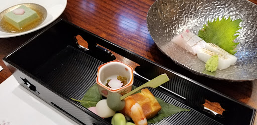 Read more法事で利用しました とても上品な味 印象を持ちました 入り口にパンフレットが有り 価格帯は標準的かと思いました 写真の他にアサリの炊き込みご飯と味噌汁 デザートに抹茶のアイスクリームで たぶん1人¥5000のコースだと思います。 欲を言うと どれもこれもそつなく美味しいが これは旨かった と言うほどの印象が薄い 勘八のお刺身は確かに旨かったけど…… 炊き込みご飯の黒くどっしりとした 大きめの器 塗りは 赴きを感じました 普段糖尿病でご飯の量を凄く気にしていましたが こういった見せ方も有るのだと 考えさせられました。 お店の入口がツツジの植え込みでいっぱいになっているので その...