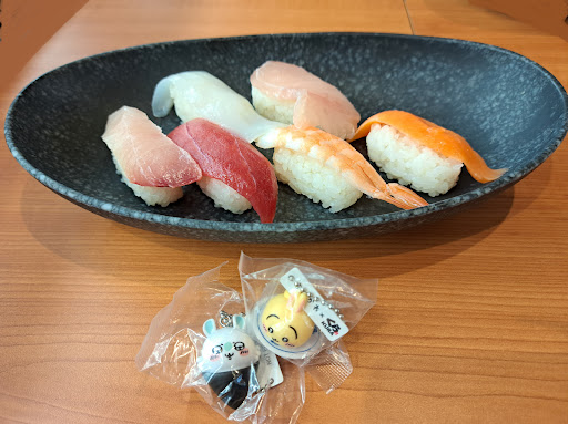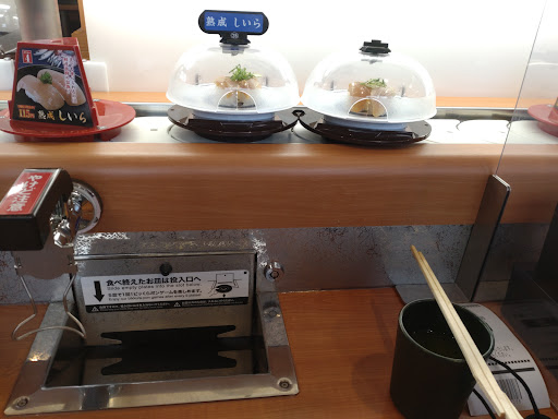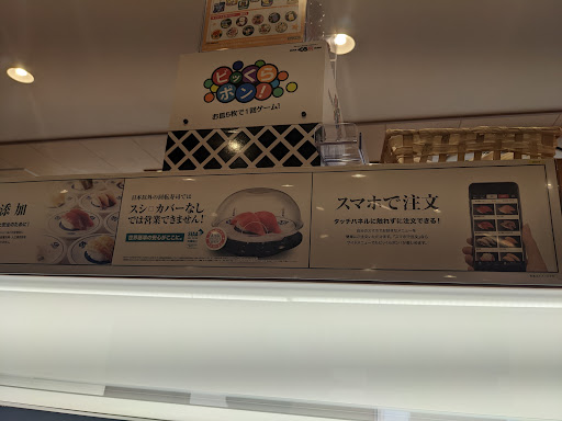 店舗へ入ると受付のモニターがあり、人数などの項目を選択すると、席番号札が発券されるので、その席へ直行。 注文はスマホでもできる様ですが、面倒なので店舗備え付けのタブレットで注文。一般的な注文方法で、特に分かりづらいと言う事もないです。 注文した商品は回転皿レーンの上段のレーンにて運ばれてきます。目の前で止まり、タブレットにてお知らせがあるので、皿を取りいざ実食。 至って普通の回転寿司店のお寿司でした。 特段美味しい訳でもなく、どちらかと言うと物足りない感じでしたね。個人的には、はま寿司の方がボリューミーで好きかな(あくまでも個人的に)。 食して空になった皿は投入口へGo。 食べた皿の枚数を数えながら食べられないのが少し残念ですが、タブレットに皿の枚数が表示されるので、注文から何から終始タブレットとにらめっこでした。 なんか皿5枚毎にミニゲームがあるようですが、やめておきました。気になる方はタブレット操作の最初のミニゲーム選択で「する」を選んでみて下さいね。 食べ終わったらタブレットの「会計へすすむ」ボタンをタップ。 会計でよろしいですか?とかの画面かと思いきや、即会計。 従業員さんが現れ、注文の残りが無いか聞かれ、枚数と金額を見せられ、最初の席番号札を持って会計レジへ。 とうとう回転寿司のレジもセルフの時代かぁ。 番号札のバーコードを読み取らせて、お会計です。 何か、食事をしたと言うよりかは、事務的に食べたといった感想。1人だったからそう思ったのかも知れないけれど、機械操作ばかりで温かみが無いなぁと言うのが正直なところですが、今の時代、仕方が無いのでしょうね。 夜間は若い方などが店鋪の外で屯しているのを拝見していましたが、平日の昼間に伺った事もあってか、店内は中高年の方が多いように見受けられました。 他のクチコミで散見される様な従業員の方の悪い印象は特になく、一般的な接客だったと思いますが、これも昼間たからなのかも知れませんが。 総合的に、味は「まあまあ」 食べごたえ「いまいち」 サービス「至って普通」 品数「寿司よりサイドが豊富」 といったところ...