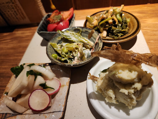 Read more■2024.12.02 ・蕪のすりながし(お通し) ・大根の葉の炒め物 ・金華鯖の酢〆 ・白エビの唐揚げ ・カキフライ(3コ) ・ぼたんこしょうの味噌にぎり ・生(ハートランド)×2 夜の部、初訪問です。 ツマミは通常メニューの他、オススメもありますが、ワインや日本酒を始めにお酒がかなり充実しています。 飲み放題はないので、本気呑みすると怖いことになるので、今回は軽〜く。 寒くなった夜、温かい蕪のすり流し(スープ)で、一息ついたところで、金華鯖の酢〆、白エビの唐揚、カキフライの順で料理が登場。 当然、料理全てが旨いのですが、大粒でサクフワなカキフライにたっぷりのタルタルの組み合わせは、一番の幸せを感じました。 最後にピリ辛のぼたんこしょう味噌のおにぎりで締め。 ご飯はたぶん木島平村産だと思いますが、やはりご飯そのものが旨い。 ランチが美味しいお店ですが、夜の料理にも通ずるものがあります。 久々に満足感の高い軽呑みでした。