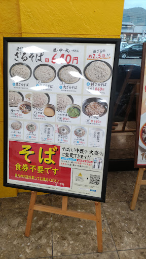 Read more平日の昼に行きましたが、先客は五組ほどで余裕で座れました。みたところ地元のお年寄りが多かったように思えます。入り口右側に大きな食券の販売機がありますが、そばはそのまま左の壁伝いに進むとメニューがあります。 他の方が書いていらっしゃるように並、中、大が同じ値段です。 そばは腰が強く美味しいですが、汁は自分の好みではありませんでした。でもこの値段なら満足です。 空いているしリーズナブルなので一度立ち寄って...
