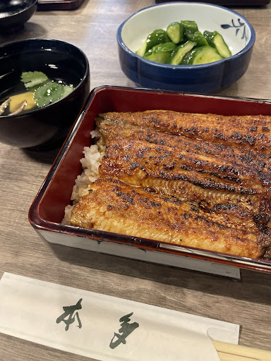 It was undeniably delicious. The food was meticulously prepared and satisfying. The restaurant had a great atmosphere, and the kind staff, including the proprietress, made us feel at ease while enjoying our eel. Before entering the restaurant, my son and I were fortunate enough to be shown the eels in the tank at the back, and they were all beautiful blue-bodied eels.