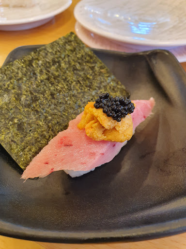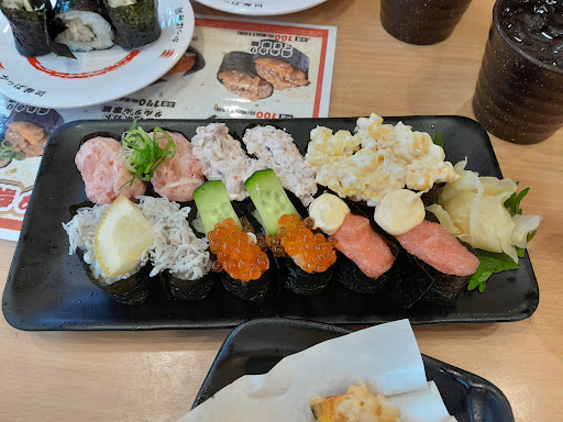 An affordable sushi train in Iiyama. I ordered a chef's recommended mixed platter. You can order udon soups and tempura as well. Desserts are mostly puddings and ice cream. Really good price quality. Food is made fast. The only thing I don't like are the harsh lights. It's not a very cosy place. But good if you're looking for a fast sushi option. For drinks they have matcha and cold...
