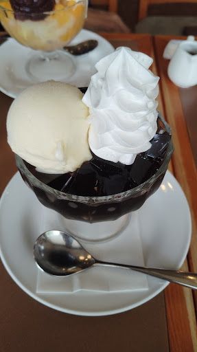 コーヒーゼリーを注文 ホイップクリームとバニラアイスがのっており、コーヒーゼリーもかなりの量でボリューム満点 これで580円はお安いでしょう