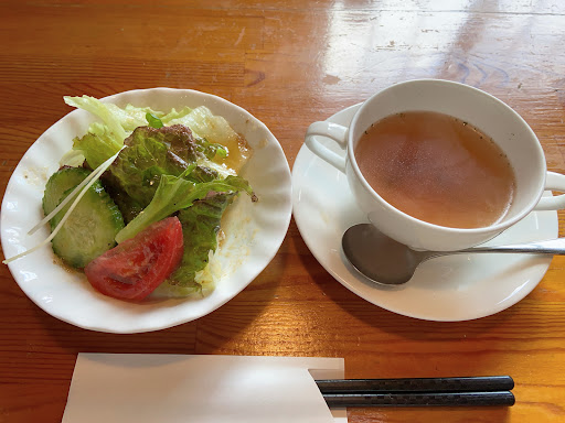 Read moreお昼に家族で入店。子供たちが魚を見に水槽に近づくと「席に座って」と言われる。ランチでチキンカツ×2とポークジンジャーのご飯セットとパンを注文。最初に出てきたコンソメスープは玉ねぎと人参を「コンソメの素」で味付けしただけの味。チキンカツは硬くてバッサバサ。ポークジンジャーは生姜焼きを甘くしたようなかなり濃い味つけ。パンは市販のバゲットを焼いただけのようなやつ。ご飯の横に添えてあるのは真っ黄色の安い漬物。値段も980円と結構高い設定なので期待してしまったが残念。食後は全員のどがカラッカラ。添加物だらけの味。 店構え的に前から気になってて立ち寄ってみたが、もぅ2度...