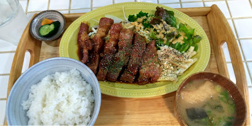 注文したのは、週末の自分へのご褒美に奮発して『ポークジンジャーステーキ定食(1100円)』をご飯大盛り(+50円)
