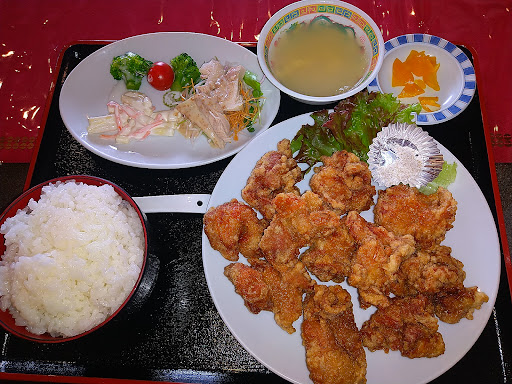 から揚げセットを注文した。 から揚げはにんにくやらスパイスが効いていて旨い。 セットは定食の1.5倍量と言う事だが、大きめのから揚げ10個+サイドの棒々鶏やらマカロニサラダにスープもついてご飯大盛りお代わり...