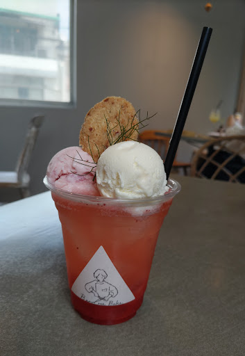 肝心のクリームソーダですが、あまおうのつぶつぶ感もあり、甘酸っぱさとトッピングの塩気を感じるクッキーが良いアクセントで実に美味💕