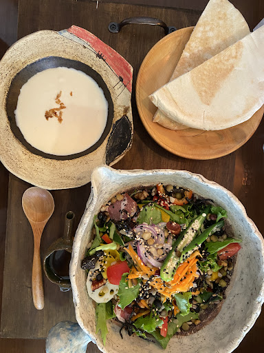 サラダランチはボリュームがあり、オリーブオイルをかけてシンプルに食べるのかと思いきや、塩昆布やドライフルーツ、生ハム、フルーツ、ナッツなどで味がついてて、大満足なサラダになっていました! 野菜が大好きな人にはぜひ食べて欲しいです😋🍴