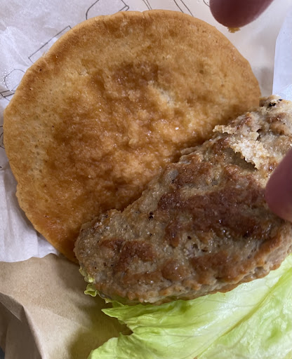 こちらで頼んだテリヤキバーガーです。 あまりに酷いので写真を撮り、お店の方に連絡しましたが、店長さんからはクレーマー扱い。 目で見てわかる通り全く照り焼きソースが付いてなく、マヨネーズが少しの味付け。 レタスも他店の3分の1。 ちなみに他のモスチーズバーガーなども、他店では溢れるほどソースがかかっているのが、こちらではほんの少し。 何かソース類の節約でもされているのか、キッチンがいつもおしゃべりで満ちているので、うっかりなのか…。 通過点という事で、たまに立ち寄っていましたが、今後は絶対にこちらには寄らず、少し先の店舗...