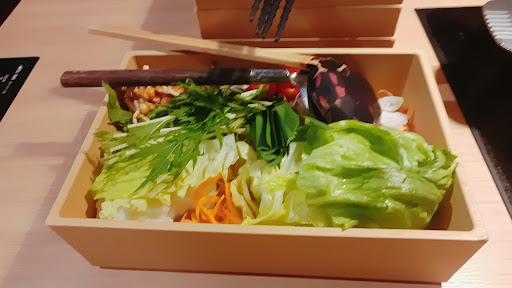 Read more温野菜は3年ぶり位の利用でしたが飯塚店は初めて訪れました。当日予約なのにスタッフの対応も良くお店の雰囲気も良かった。ただ19時過ぎてもお店の看板や周りの電灯が灯ってなくて真っ暗でした。 しゃぶしゃぶは美味しいけれど胡麻ダレはイマ3ぐらい、ポン酢+だいこんおろしが美味、粗くおろしてあるので食感がとても良いです。 お寿司もいただきましたが酢が強すぎるしイカはとても硬かったです。 おすすめは何とビピンパ丼です、ナムル追加でパクパクいけ...