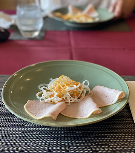 ランチタイムに来店。 高級店な雰囲気で入店はずっと尻込み(笑)してましたが、ランチタイムは割とリーズナブル。 12時ちょうどに入店。幾つかのテーブルは予約の札が。