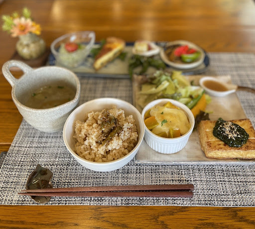 Read moreGoogleマップで偶然見つけて、気になっていたお店、用事の帰りにふとこちらを思い出し、予約無しででランチに伺いました。 思い切って行って良かった♪お友達にも教えたいカフェです。 お料理はどれも美味しく、たっぷりのお野菜やハーブはほとんどが自家製とのこと、ハーブティーにデザートもついてて大満足🥰。食後にお庭を拝見(5月で色んなお花が咲いてました)、貯水池のほとりでぼん...
