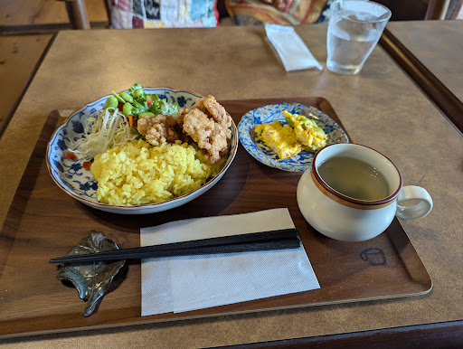 When we pass this shop by bicycles on our way to Horyuji, this old house coffee soup and its sign “Home roasted coffee” caught our attention and after exploring the temple we came back here for a cup of coffee and some rest. And it turned out to be a beautiful place! It’s an old tradition house just at the temple and it offers a large variety of single origin coffees, a couple of cake types, and some simple but delicious food for lunch (we got dry curry and ginger pork which were more expectations). Prices very reasonable, and after you buy coffee you can get one more cup of coffee for only 200 yen. We also bought coffee beans (home blend with a picture of a cat on the pack - it is somehow helps stray cats of the area) and some chocolates which are really tasty. The stuff is incredibly friendly and we had a great pleasure discussing the temple with her (it turned out that she occasionally works as a tour guide at the Horyuji temple). Definitely recommend this hidden...