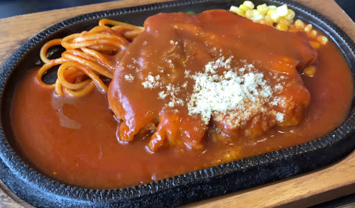 迷わずポークチャップセットをチョイス。 お連れ様はスパカツを
