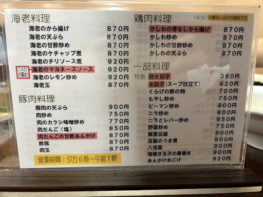 Read more大阪旅行の際に家族で利用。 宿泊したホテルの近くでご飯が食べられるところを探した結果こちらがネットでヒットした為訪問。 行列に並ぶ事はありませんでしたが他のお客さんと相席に。 町中華の大衆店ですし我々は致し方ないと思い席につきましたが先客のご家族4名(特にお父さん)が気に入らない様子。 奥にある座敷席が空いた瞬間「奥に移れる!?」と店員さんに聞いて狭い店内の奥に我先に入っていきたかったのでしょう、私の連れに別に通せんぼしているわけでもないのに「通してくれますか!?」と語気を強めた関西弁特有のイントネーションで言い放たれまず気分を害する。