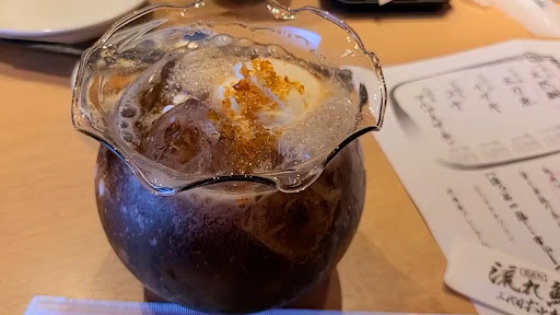 2024年2月 アプリのアカウントが無事復活できたのでポイント切れそうなので行ってきた。 定食変わってた。ベースとなる盛り合わせを選んで、赤だしや茶碗蒸しなど組み合わせて追加できるようになっていた。コレエエな。 牡丹の赤だし、茶碗蒸し、天ぷらのセットと、コチ、カマス、アルプスサーモン、甲イカ、蓮根饅頭。ボタンのセット食べ終わる頃にはなんかもうお腹いっぱい。でも美味しい。 牡丹はたこ、マグロ、鯛、サーモン、帆立、数の子、生エビ、いくら、生ウニ、煮穴子でした。 生ウニは、ミョウバンやアルコールの匂いと味しなくてなかなか美味しい。 コチは、ポン酢で食べるのがおすすめとのこと。 アルプスサーモンは、鱒なんかな?紅鮭のような赤い身に脂のノリは控えめで、身の味楽しめる。 蓮根饅頭もっちりしていて中にシャキシャキ蓮根が入っていて美味しい。コレ食べたかったから売り切れじゃなくて良かったわ。 デザートにパチパチコーラフロート、金魚鉢に入ってると書いてあったが、ソフトボールの3号球みたいなもんかと予想してたが大体合っていた。 ただちょっと氷多い気がする。