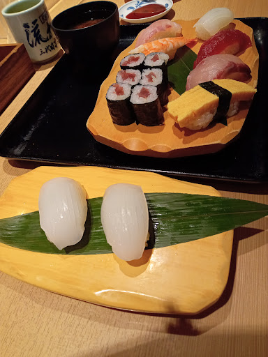 2025年9月 1年近くご無沙汰していたのですが、久々にお伺いしてみた。 おや?定食がなくなっている… メニューも本日のおすすめと季節の限定メニュー以外はタブレット見ないとわからない… なんかメニュー減った気がする… お寿司はいつもと同じで美味しかったです。 わさびメッチャ効く。ネタをめくって見たら米粒一粒程のわさびなのですが、これがよく効く。 あとなんか微妙にタブレットが使いづらい。 偶々なのかは分からんのですがメニュー減った気がするのは残念です。 特に定食なくなったのは残念… たくさん食べられなくなったので定食のようにいろんな物を一貫ずつ食べられるのは有り難かったのですよ。 まあ。5貫セットとか三昧とか頼んでくれってことなんかねぇ。