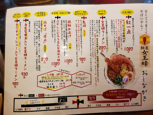 接客および店主の態度が酷すぎる。 自分は女王蜂さんに1人で3回ほど通いました。 先日、嫁とランチに出かけた時、一緒に行ったことがなかったので車で30分ほどかけて行きました。 到着時間は13時過ぎだったかと思います。 店に入るとあいにくカウンターしか空きがない様子。 この店のカウンターは非常に狭い上、感染対策でドアは開けたままなので風が寒く、さらには椅子もかなり硬いため、できればテーブルが良かったのですが、空きがなかったので、カウンターに案内され、その点について不満はありませんでした。 それからメニューを注文後、出てくるまでに他のお客さんが全員帰ったため、テーブル席に移動したい旨を女性店員にお願いしました。 女性店員に、はいわかりましたと言われて、自分でグラスを持って移動しようとしたところ、店主から非常に冷たく、そこでお願いしますと言われました。 1人の時はカウンターでも良かったんですが、2人で食べに行って、しかもラーメンが出てくる前に他のお客さんは全員がいなくなり、テーブル席が空いたから移動をお願いした訳です。 まさか断られるなど考えることもなく、女性店員は承諾したのに、横から店主が冷たい対応…。 自分は思わずホンマですか?って言葉を口走ってしまうほどビックリしました。 結局そのままカウンターで2人とも非常に不快な気持ちのまま食べましたが、ラーメンの味なんか入ってくる訳もありません。 ついでに言うと、他のお客さんが1万円札しかなく、謝りながら支払っていたのに、出て行ってから店主はグタグタと文句を言う始末…。 とにかく接客というか店主の態度が最悪過ぎて、もう二度と行きません。 これほど不快な気持ちで食事したのは初めてです。 ラーメンの味は個人的には好みだったのに残念。 店主は一度、客側に立って考えることと、接客についても学ばれることをおすすめします。 返信の言葉も想像がつきますが…