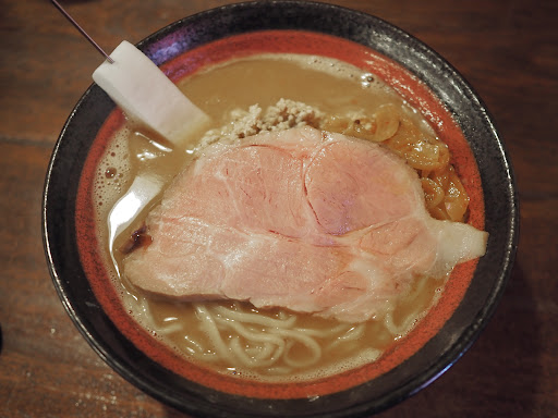 全開は看板メニューの「紅一点」を食したので何か他の物をと思い、メニュー表の真ん中付近にあった「鬼滅」を「はー、こういうラーメン屋さんもブームに乗るんや」と思いながらオーダー。