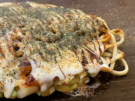 毎度ブログでは書いているんだけど、こちらのお好み焼きはふあふあ軽いタイプではなく、昔ながらのしっかりぎゅっタイプ。これが好きなのよね〜 麺ももちっとして、こりゃ食べ応えあっていいわ。 ここのソース、ちょっとスパイスというか酸味を感じつつの甘味がたまらんのよね。