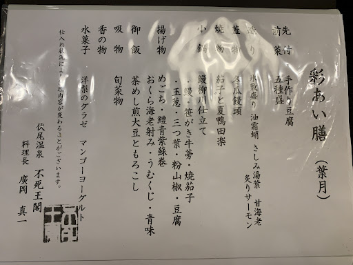 池田市の不死王閣、夕食&朝食付きで泊まりました。 夕食、しっかりボリュームがあっておいしかったです。 うむくじや、いちじくとスモークサーモンと茗荷の酢物と、初めて食べる料理も。