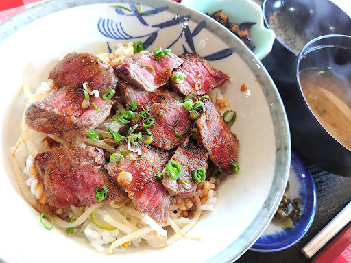 Read more★4.7 ◎『正解は旅のスタート地点にあった(笑)😁💧💧』 今回の壱岐島上陸で『口コミ上位✨、テレビ取材多数🎥✨等々のお店』を色々まわりましたが、、、、、。結論、復路のフェリー🚢乗船待ちの時間に、立寄ったこのお店が1番の満足度✨でした😄。 ◎『壱岐牛ステーキ丼(1350円)』 美味しっ❗ ちょうどよい肉厚、大きさ😌、焼き加減😌、タレの味と量😌、そして満足感をさらに高めるお値段設定✨😌👍。 ◎スタッフさん 清潔感のある女性スタッフさんの接客は、スマートで壱岐の印象がさら...