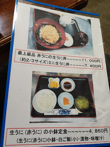 頂いたのは「冷凍紫生ウニ丼」「みうらや定食」です!「赤ウニ丼」は生で提供されるためお値段高めの6600円でした!先ずは「紫生うに丼」から〜美味しい!ウニの濃厚な味わいがウニ好きには堪りません〜次に「みうやら定食」の「ウニ飯」もウニ感しっかりとご飯に味ついて美味しい☆贅沢しなれければこれで十分な味わいです。