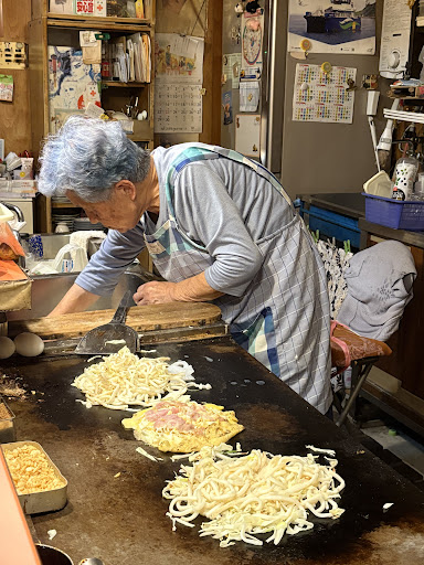 Read moreWe had the most authentic experience here. The owner runs the place for 50 years and she will retire in 1.5 years so you have to rush. We had the so-called “best okonomiyaki” in Hiroshima yet her okonomiyaki exceeded. It has this nice soft texture and so much sea food in it. You must try “Daimyo Yaki” which has everything in it. She is 83 years old and it is just impressive that she still runs the business. She said she supports her grandson and will run the business till he graduates the university. We also had a very warmhearted service and she shared the history of this land. I recommend this restaurant...
