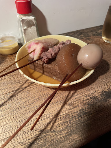 Stall owner was very kind and patient, to explain to us, there is only Japanese menu and they serve Oden on sticks.
