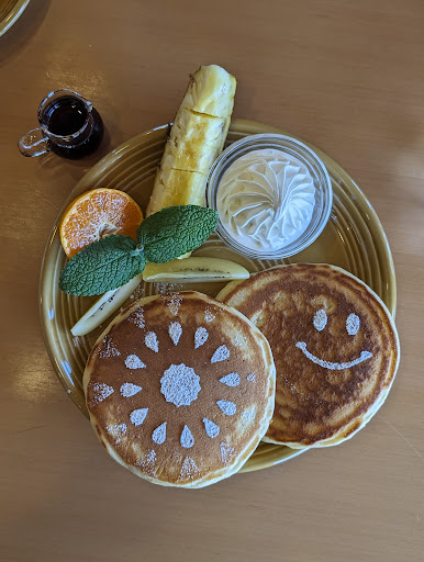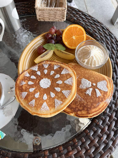 Read moreGreat food, cute atmosphere, strict service. When we came in, they tried to get us to sit outside even though there were two open tables indoors. I got the feeling that they prefer having cyclists stay outdoors. When we explained that it was too hot out there, they gave us a table inside. Our server was a very sweet old lady, although she had to get permission from the strict manager for everything. We ordered the chicken curry and fruit pancakes to share. The food was delicious. The homemade ice cream that the pancakes came with was divine. However, they were oddly frugal and strict with their cutlery and plates, despite us explaining that we wanted to share both dishes between the two of us. They were not open to me charging my e-bike battery. When I offered to pay, the answer was still a no....