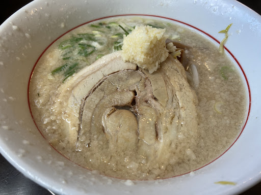 ラーメン 濃厚スープにもちもち麺 ニンニクのパンチに圧巻! 野菜少なめ 脂はギト、ニンニクはマシマシで注文