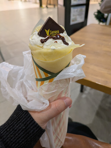 でも、今年9月からイオンモールでクレープを販売してますが、クレープは死ぬ程不味いです。 チョコバナナを注文しましたが、おかず系のクレープと生地を併用する為なんだと思いますが、生地も甘味なく、生クリームも甘くない、フルーツも3切れ、チョコもかかっておらず、2センチ角のチョコ1枚。で、650円。 甘さ控えめ。と言いたいんでしょうけど、全てに甘味がないのはスイーツではないし、ただの味のない食べ物です。味のバランスが悪すぎる。甘くなさ過ぎて、生クリームがくどくなりすぎて胸焼けがする。バナナ3切れ、チョコもかかってなくて、甘くない小さなチョコ1枚なんてあり得ない。おまけに写真と全く違う。こんなに美味しくないクレープは初めてでした。
