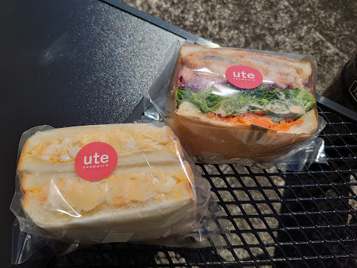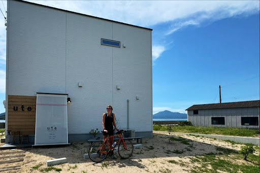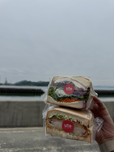 I had started the second half of the Shiminami Kaido towards Imabara that morning not realizing that there were not many places on that part of the route where I could stop for food. After a couple hours of no options, UTE sandwich shop appeared. All of the sandwiches looked so delicious that I needed help deciding. The owner told me what her favorite was and I took her suggestion..It was the lotus root and fried fish. ( They are actually sandwich half's but packed full with ingredients) I ate it under one of the umbrella shaded picnic benches overlooking the bay. It was fresh and delicious. Additionally, the owner( sorry I didn't get her name), noticed that I was quite hot from the steep limb a couple miles previous and she offered me an ice cold towel. It was so refreshing and a great idea for cyclists coming by in the extreme heat. If you're passing by, I highly recommend you stop by for a tasty sandwich. You'll be...