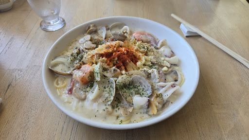We stopped at the local sake place and stopped for lunch on a warmer day. It was warm inside for us, if I'm eating warm food I'd prefer it to be cooler inside. That said, we had a bomb pasta dish for $8.33 each! Really cheap considering the seafood included in the dish. That back in the states would...