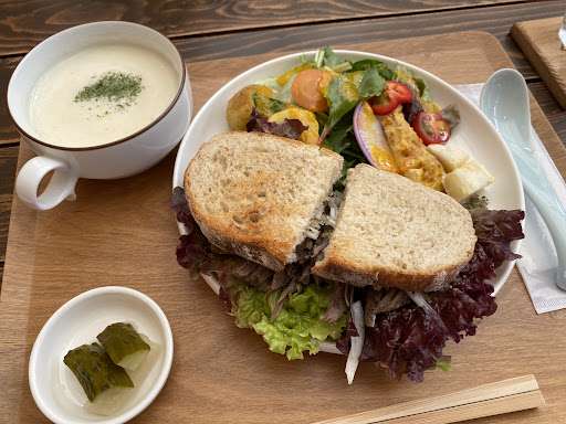 Such a relaxing space. The atmosphere is clean and open. The windows let in a lot of light. The food seems so fresh and healthy. It’s a great spot to study or relax for a bit. Outside there’s a garden and the whole space feels very healing. On nice days it seems like they can open the big windows and let air come through. This spot is...