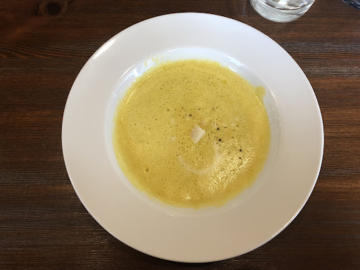 前菜にはスープとサラダ まろやかさもあり酸っぱさもあるドレッシング このドレッシングはオリジナルだそうです