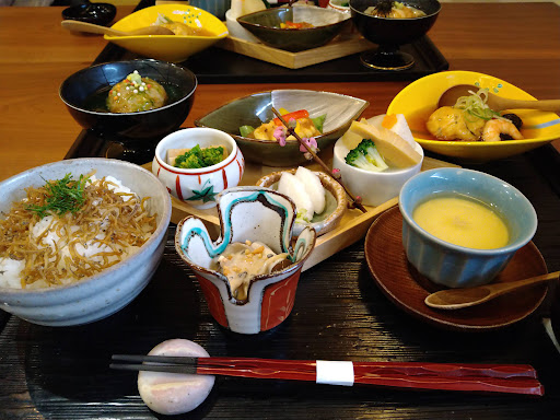 Read moreランチを予約しました。 メニューはインスタにのっているので、そちらをご参考に! 旬楽膳のお造りと蓮根まんじゅう磯辺あんかけを頂きました。 蓮根まんじゅうの磯辺あんが、アオサ海苔(多分)がたっぷり出汁も美味しいです。ご飯はおかわり無料。御膳の彩りもよく満足出来ました。 珈琲、紅茶などのメニューはありましたが、アルコール等のメニューが置いてなかったので、あるのかわかりませんでした。 支払いにP...