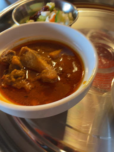 カレーは2種 マトン 骨付きマトンがゴロゴロ。最初は油分が多いからキツイかなと感じたが美味かった。 ダール 豆の形状はほぼ無くペースト状だが、 風味と旨味が優しくて美味しい。