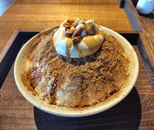 Read more先日こちらを訪れました。 チャイとかき氷を中心に提供する「mokkado」は、置き薬や漢方薬を製造販売する「源平製薬」が企画し、訪問介護を手掛ける会社が運営しているそうです。トイレには昔の薬のポスター?らしき物も飾られており、雰囲気は◎。 築100年超えの古民家を改修したモダンな空間には、改築の際にでた建材を再利用した椅子やカウンター、庭の石を使ったテーブルなどが並べられています。 自家製のチャイシロップをかけたかき氷を注文。一口食べて、「おおっ…!」と声が出たチャイ氷。スパイスのパンチが効いてて、でもちゃんとミルクがそれをまろやかに包み込んでくれる感じです。これは、胃袋だけじゃなくて心も抱きしめられるやつです。